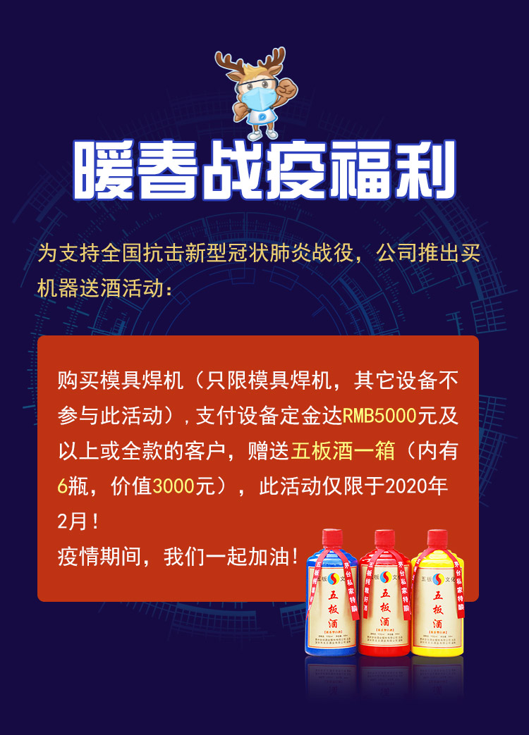 新型冠狀肺炎戰役福利——買通發激光模具焊接機送五板酒