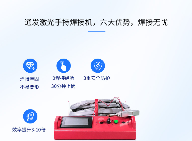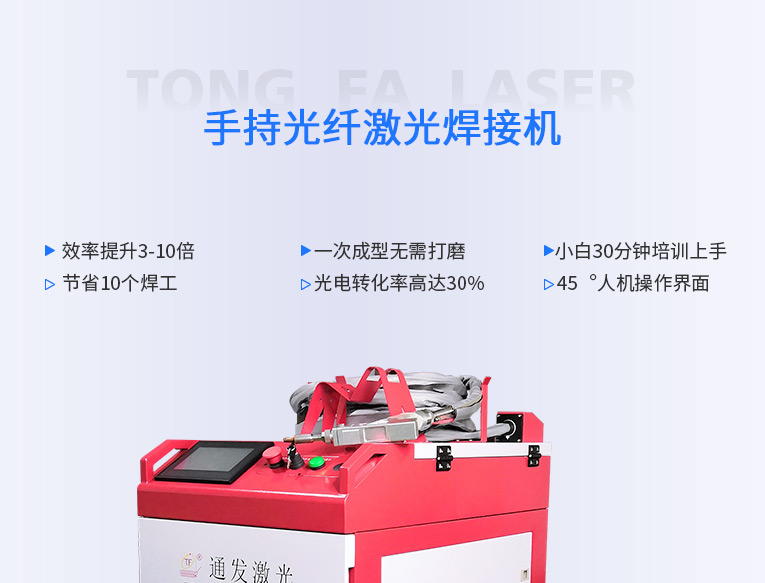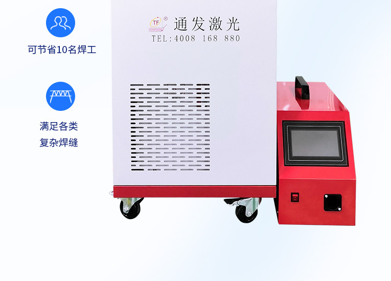 通發(fā)激光一體式手持式激光焊接機(jī),用手持式焊接槍替代以前固定光路,手拿焊接,靈活方便,焊接距離更長(zhǎng),克服工作臺(tái)空間的局限性,工件尺寸不統(tǒng)一時(shí)無(wú)法自動(dòng)焊接的情況下使用。主要針對(duì)大型工件、固定位置如內(nèi)直角、外直角、平面焊縫焊接、焊接時(shí)熱影響區(qū)域小,變形小、而且焊接深度大,焊接牢固。是遠(yuǎn)距離焊接大工件的較為靈活的全新的焊接工藝。