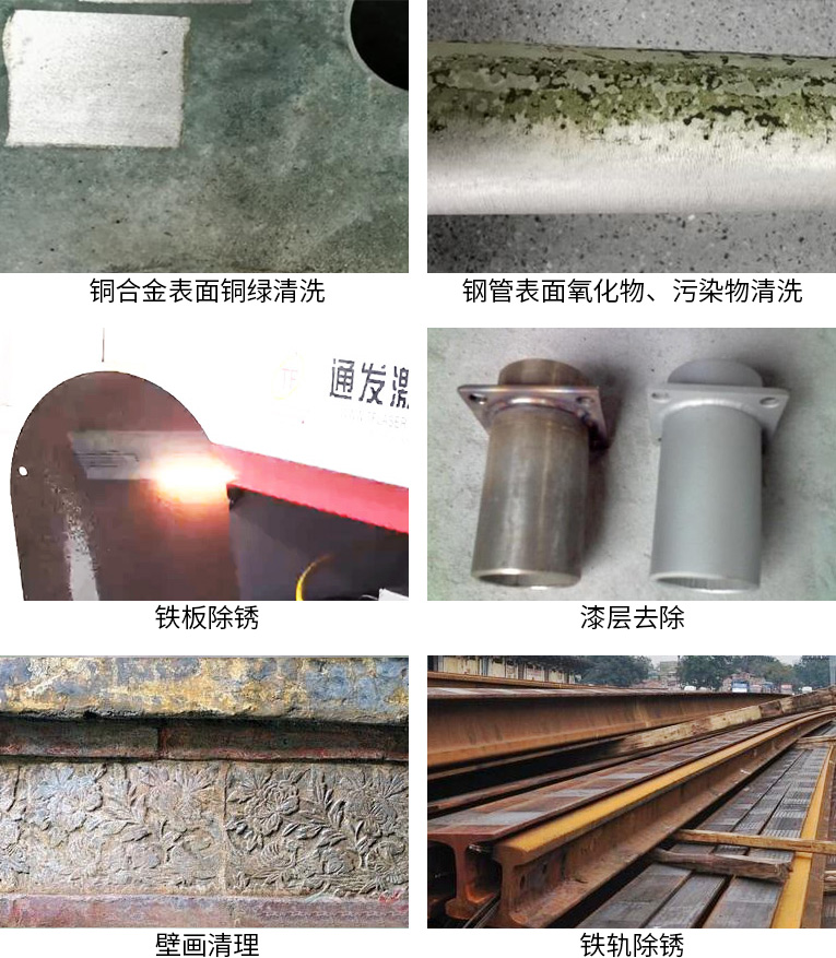 激光清洗具有無研磨、非接觸特點(diǎn),不但可以用來清洗有機(jī)的污染物,也可以用來清洗無機(jī)物,包括金屬的銹蝕、金屬微粒、灰塵等,應(yīng)用功效包括:除銹、脫漆、去油污、文物修復(fù)、除膠、去涂層、去鍍層。適用于銹層、漆層較厚,油污較深的情況下清潔,以及表面粗糙化、焊縫清潔等工藝環(huán)節(jié),效率極高。應(yīng)用行業(yè):航空、船舶、文物保護(hù)、汽車周邊、食品行業(yè)、軌道、橡膠模具、其他。